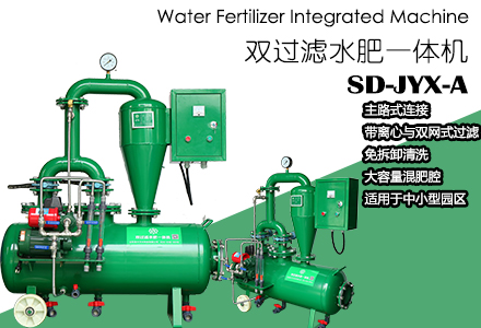雙過濾水肥一體機(jī),將離心過濾和網(wǎng)式過濾與施肥動(dòng)力系統(tǒng)相結(jié)合,適用于井水作為水源的灌溉系統(tǒng),可管理中小型種植園區(qū)。